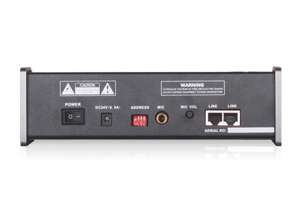 •设有1个级联接口,支持8台寻呼话筒手拉手式连接,传输距离可达1KM;;